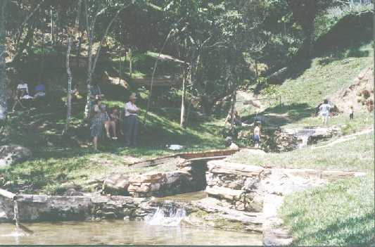 um local de descanso e lazer com cachoeira, piscina, ducha, passeio a cavalo,